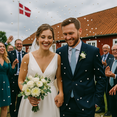 Vi har ikke modtaget nogen indikationer eller klager over, at bryllupsriset skulle klistre fast på tøjet. Bryllupsriset er lavet af sukker og smelter derfor ved kontakt med vand, så vi anbefaler ikke at bruge det i regnvejr. Risene har dog en fast form og er lette at børste af tøjet.
