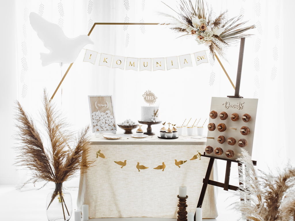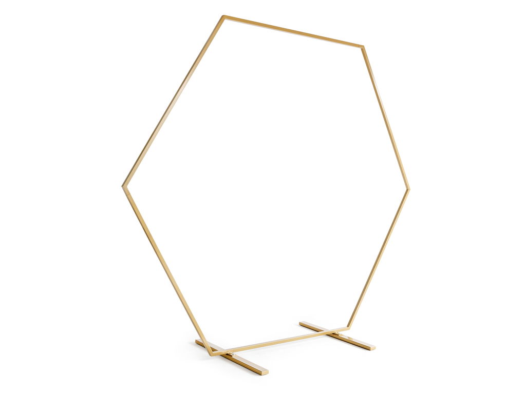 Skapa en magisk bakgrund med vårt sexkantiga backdropställ i guld – en elegant detalj för bröllop, dop, fester och fotograferingar.