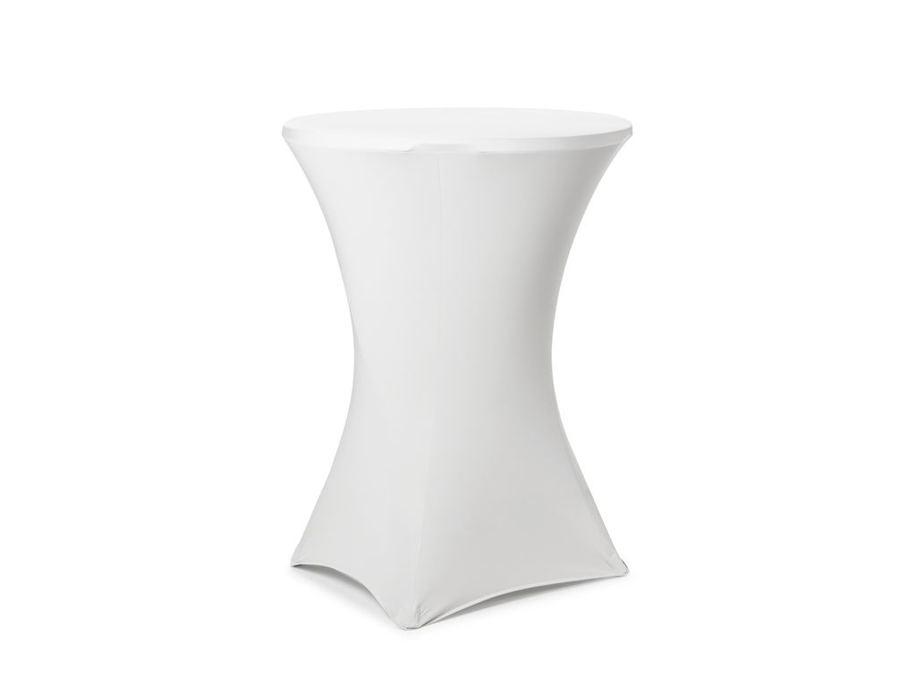 Stretchig och elegant ståbordsduk i vit spandex som ger ett snyggt och professionellt intryck. Passar utmärkt till event, mingel och bröllop.