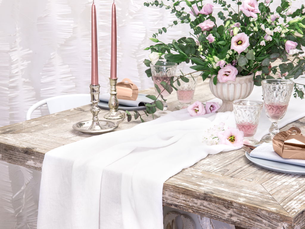 Med sina generösa 5 meter kan du låta tyget falla romantiskt över bordets ändar eller vika det i lager för extra struktur. Muslintyget är lätt att arbeta med, och dess organiska känsla skapar en inbjudande atmosfär – både inne och ute.