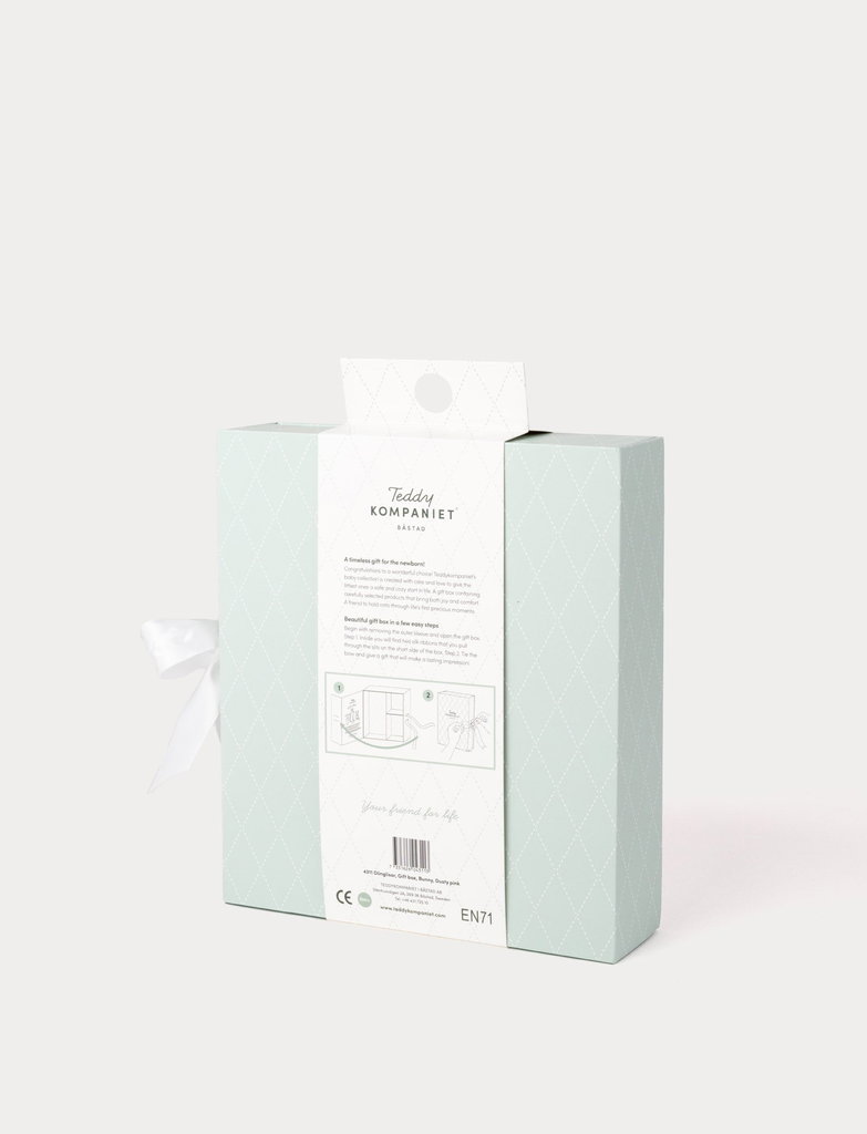 Den perfekta presenten till nyfödda. Diinglisar gåvoset i rosa kombinerar komfort och lek i en elegant presentförpackning med sidenband.