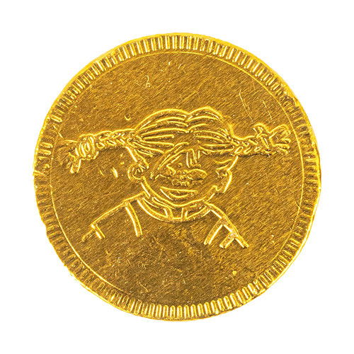 Smarriga mjölkchokladmynt i guldfolie med Pippi-motiv. Perfekt för kalas eller som rolig liten gåva! Funkar fint för lekar och skattjakt och är given i fiskdammen.