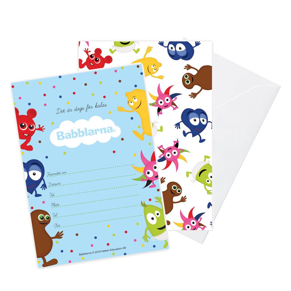 8 st söta inbjudningskort för barnkalaset. Dessa inbjudningskort har motiv och tema från Babblarna. Korten kommer med tillhörande vita kuvert. På framsidan kan du fylla i detaljerna för kalaset så som datum och namn mm. Korten är ca 11 x 15,5 cm stora. Perfekt att posta till släktningar eller att dela ut i grannskapet när det vankas barnkalas.