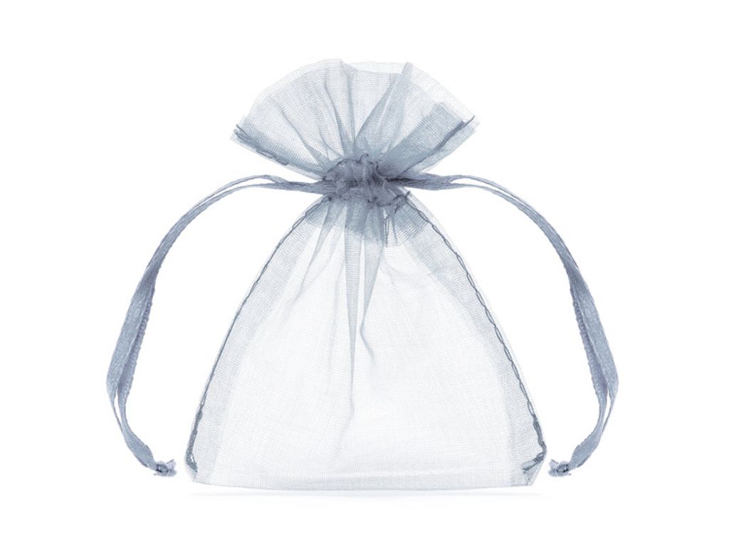 10-pack organzapåsar i silver, storlek ca 7,5 x 10 cm. Passar utmärkt för bröllopsris eller att förvara små presenter och gåvor i.